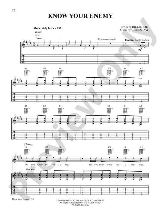 Green Day - Tre Guitar Recorded Version Tab Book