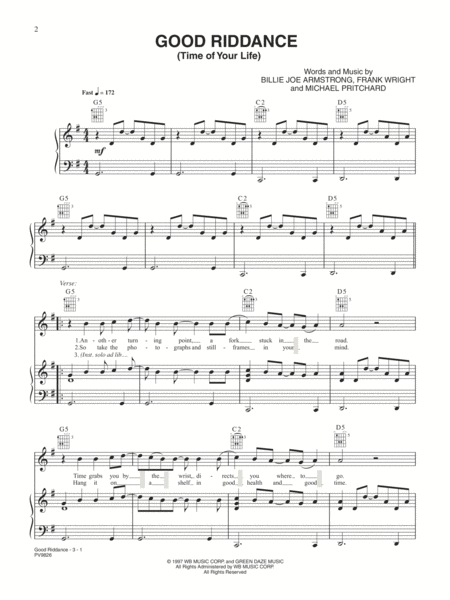 Green Day - Good Riddance (Time Of Your Life) PVG Sheet Music
