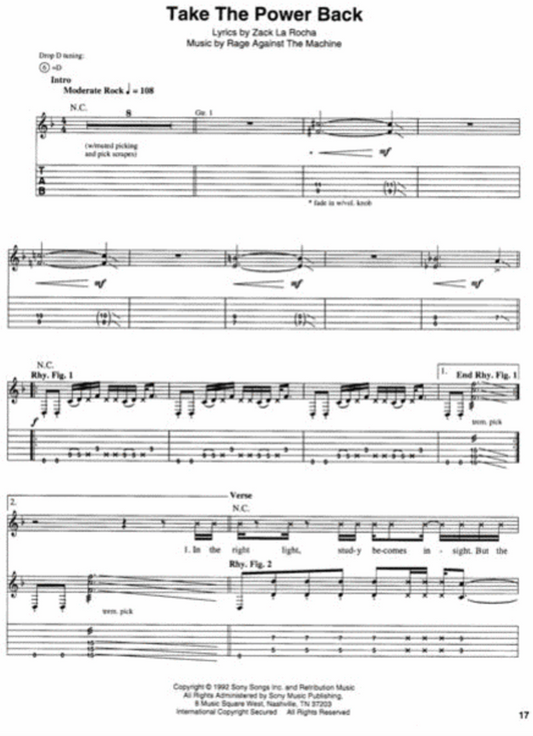 Rage Against The Machine Guitar Tab Book