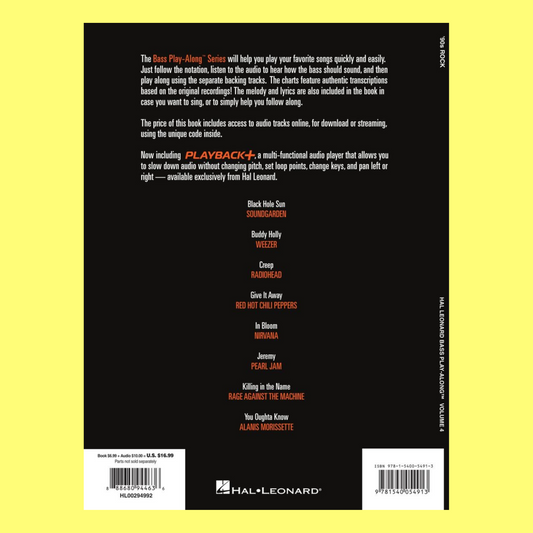 90's Rock Bass Play Along Volume 4 Book/Ola