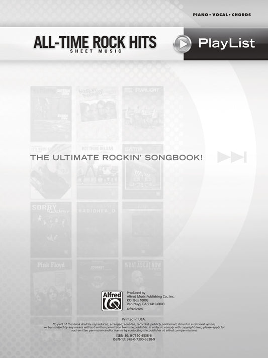 All Time Rock Hits Sheet Music Playlist PVG Book