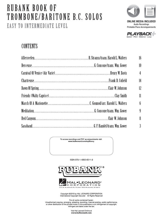 Rubank Book of Trombone/Baritone B.C. Solos - Easy to Intermediate
