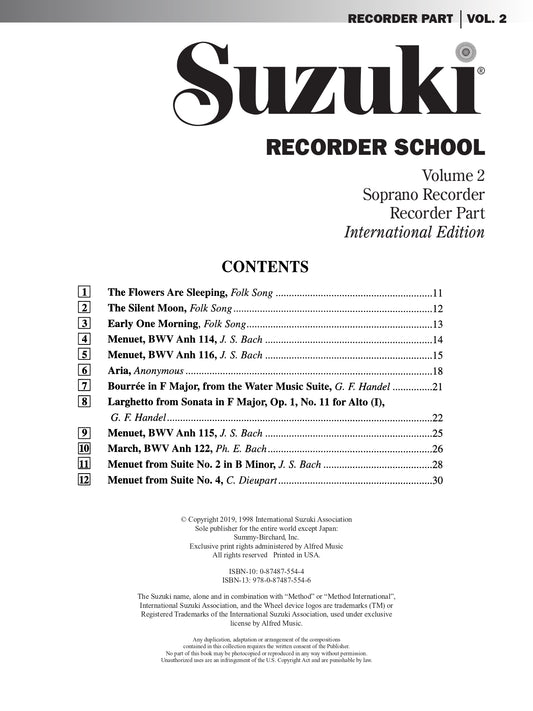 Suzuki Recorder School - Volume 2 Alto Recorder Part Book