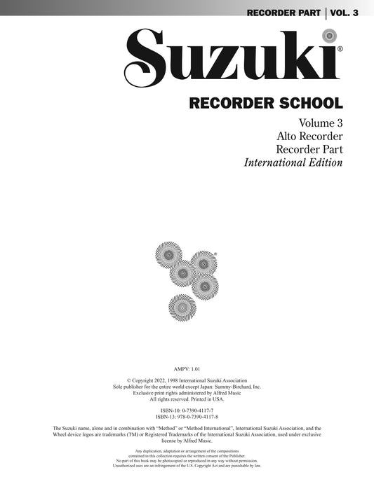 Suzuki Recorder School - Volume 3 Alto Recorder Part Book