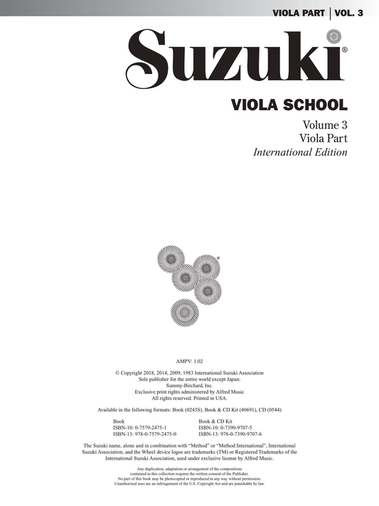 Suzuki Viola School: Viola Part Volume 3 Book