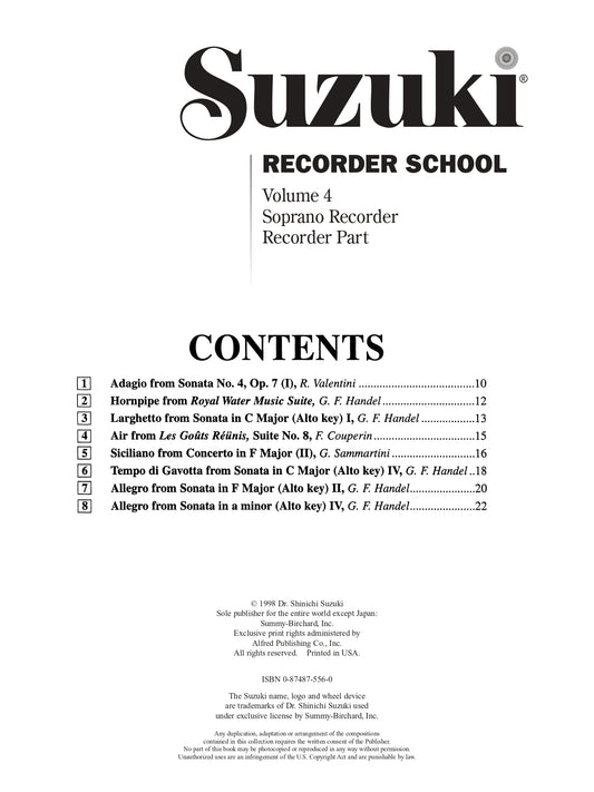 Suzuki Recorder School Vol 4 Descant Recorder Part