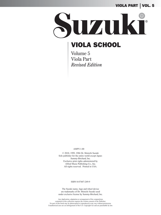 Suzuki Viola School: Viola Part Volume 5 Book (International Edition)