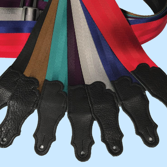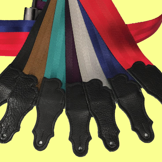 Franklin 2" Teal Aviator Seat Belt Guitar Strap with Pebbled Glove Leather End Tab