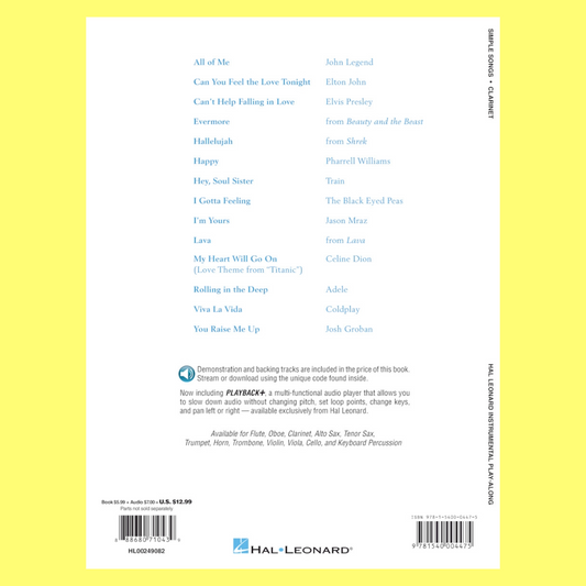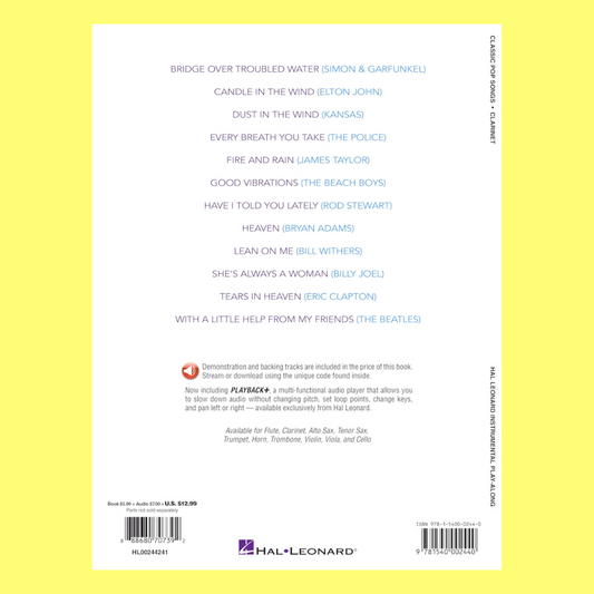 Classic Pop Songs For Clarinet Play Along Book/Ola