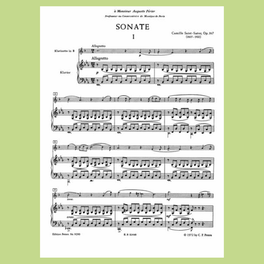 Saint-Saens - Sonata Op 167 Clarinet with Piano Accompaniment Book