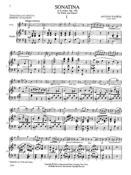 Antonin Dvorak - Sonatina G Op 100 Flute with Piano Accompaniment Book