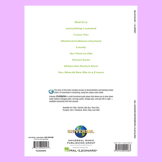 Billie Eilish For Clarinet Play Along Book/Ola