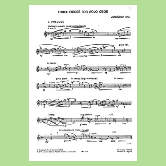 John Exton - 3 Pieces For Oboe Solo Sheet Music