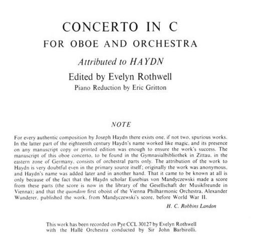Haydn - Concerto in C for Oboe and Orchestra Book