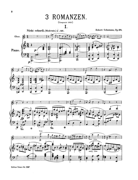 Schumann - 3 Romances Op 94 For Oboe Or Violin Book