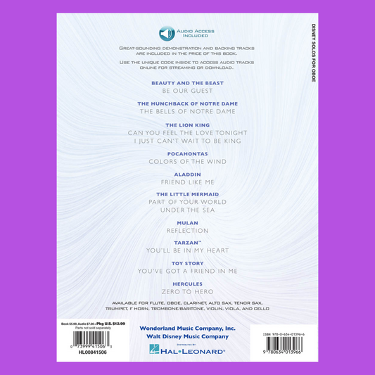 Disney Movie Hits For Oboe Play Along Book/Ola