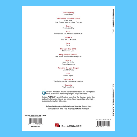 Favorite Disney Songs For Oboe - Play Along Book/Ola