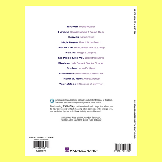 12 Hot Singles For Alto Saxophone Play Along Book/Ola
