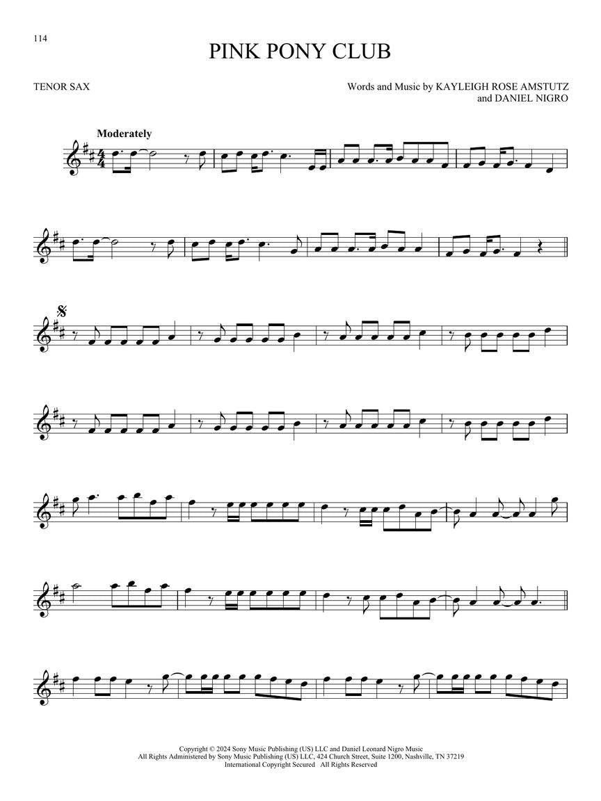 101 Top Hits For Tenor Saxophone Songbook (New 2025 Release)
