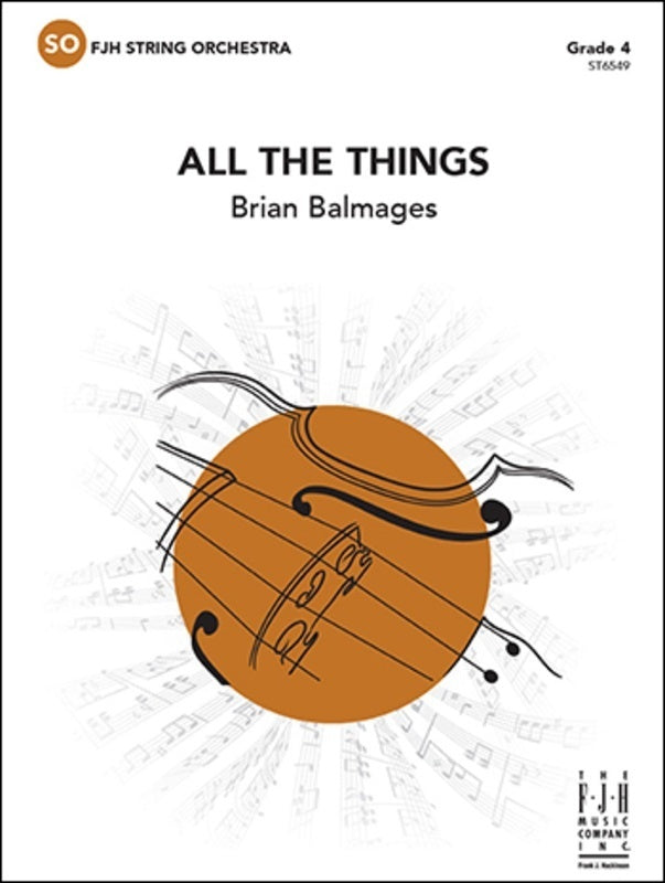 Written to celebrate an amazing orchestra teacher's retirement, this piece strives to capture the joyful things, the emotional, loving, and supportive things - literally All the Things. Opening with a gentle chorale, the music moves from a warm embrace to a rollicking groove based on fiddle music and more. Highly energetic and emotional, this piece will leave you with joyful tears and have a profound impact on your students and audience.