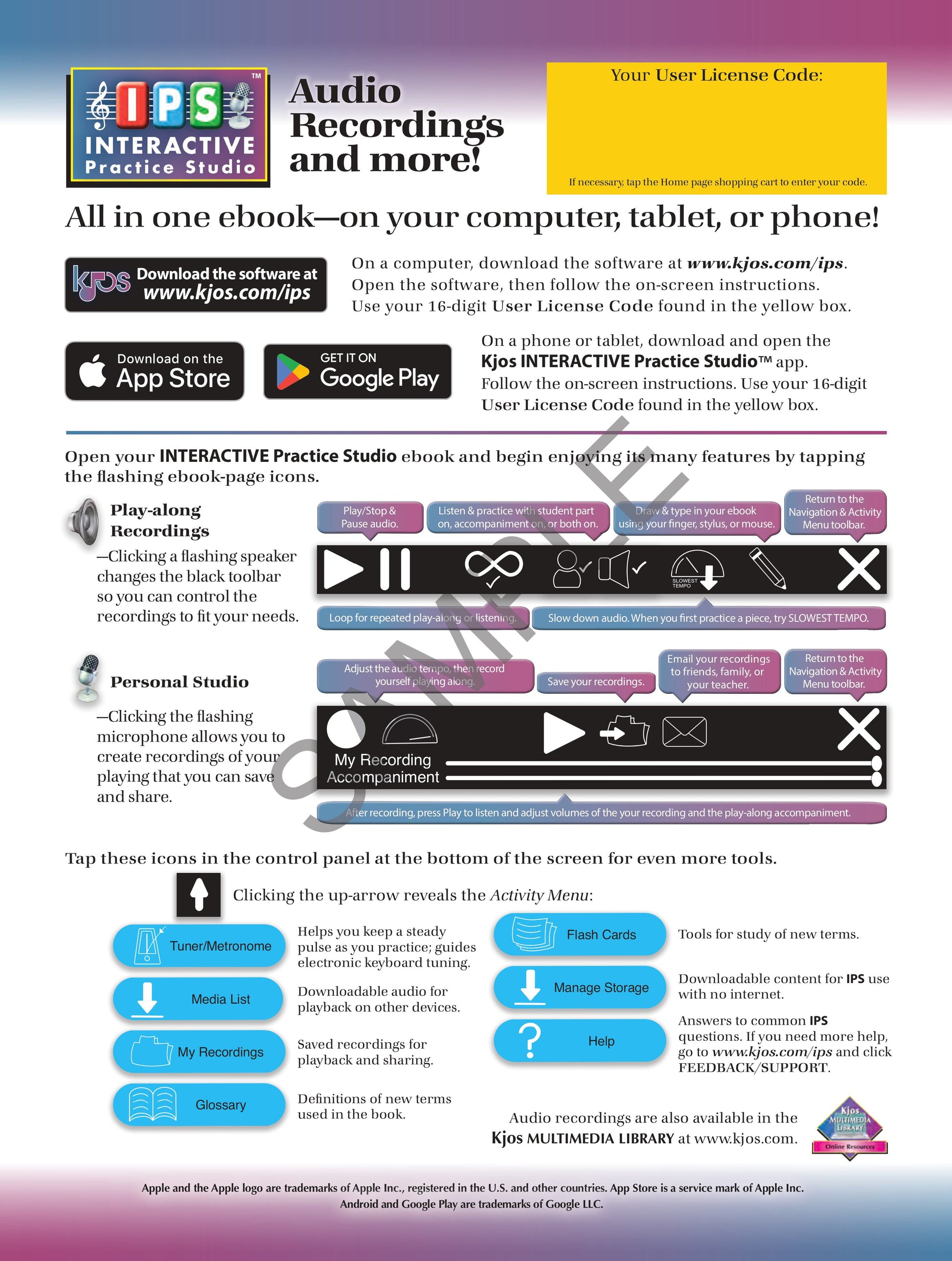 Bastien Piano Basics ENHANCED editions combine the time-tested, best-selling Bastien Basics pedagogy with innovative technology to take learning to a whole new level! Each book includes online access, new play-along accompaniments, a personal recording studio, writing tools, flashcards, and much more – all powered by the INTERACTIVE Practice Studio (IPS) app!