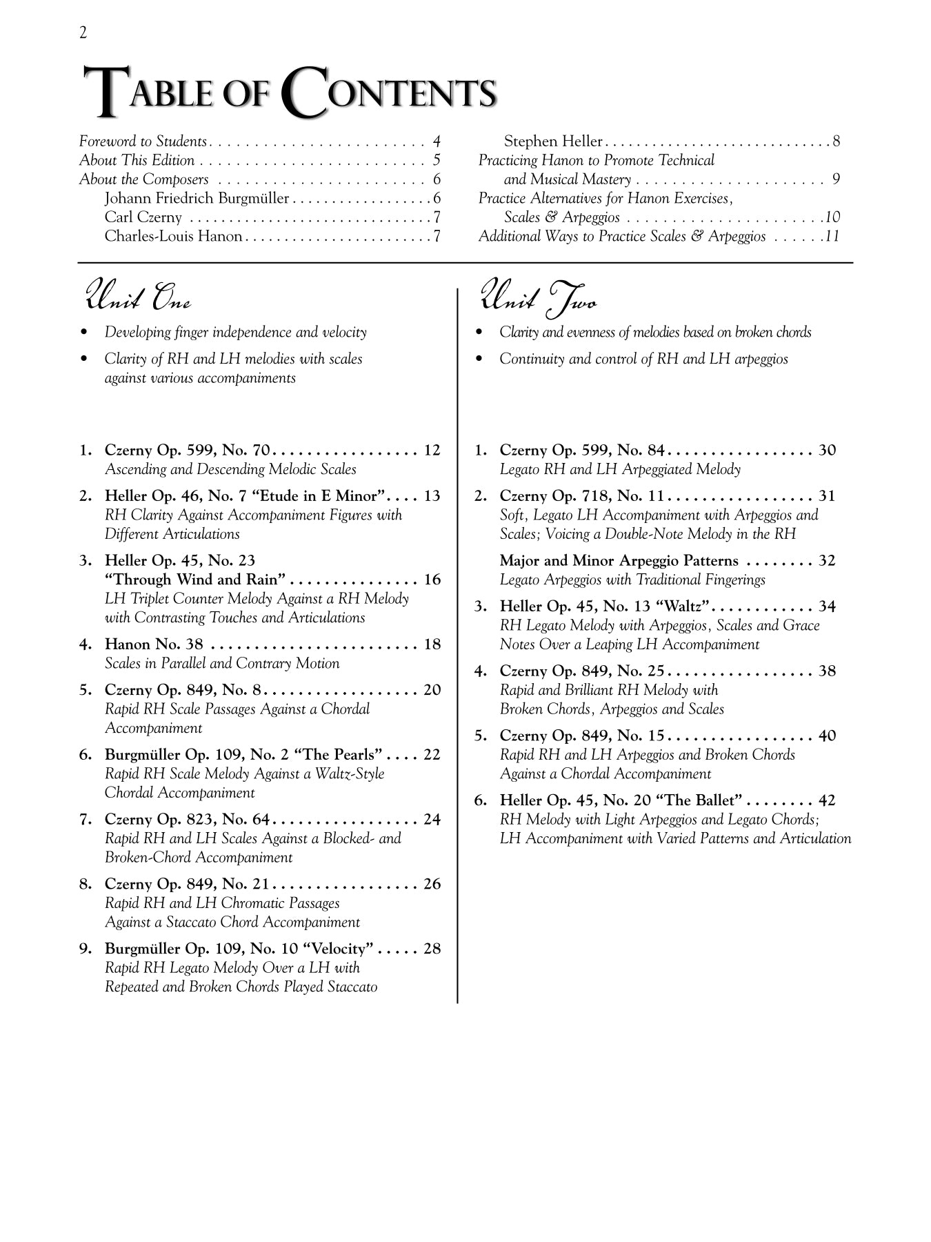 Foreword to Students About This Edition About the Composers Johann Friedrich Burgmüller Carl Czerny Charles-Louis Hanon Stephen Heller Practicing Hanon to Promote Technical and Musical Mastery Practice Alternatives for Hanon Exercises, Scales & Arpeggios Additional Ways to Practice Scales & Arpeggios
