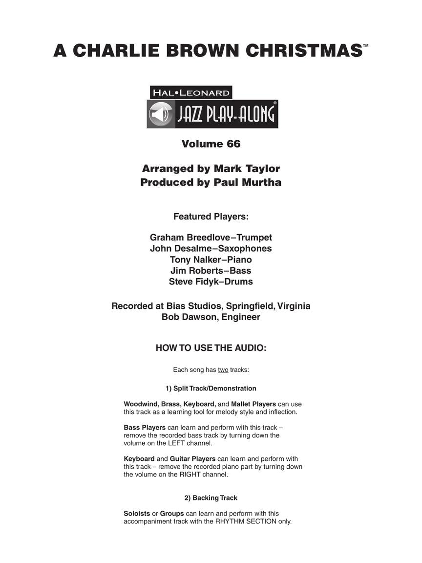 Charlie Brown Christmas - Jazz Play Along Volume 66 Book/Cd 📚📀