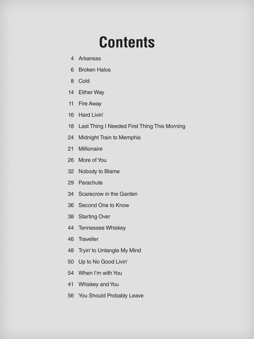 Featuring favourites such as "Arkansas," "Broken Halos," "Millionaire," "Parachute," "Starting Over," "Tennessee Whiskey," "Traveller," "You Should Probably Leave," and more, this songbook offers a comprehensive selection of Stapleton's best-loved tracks.