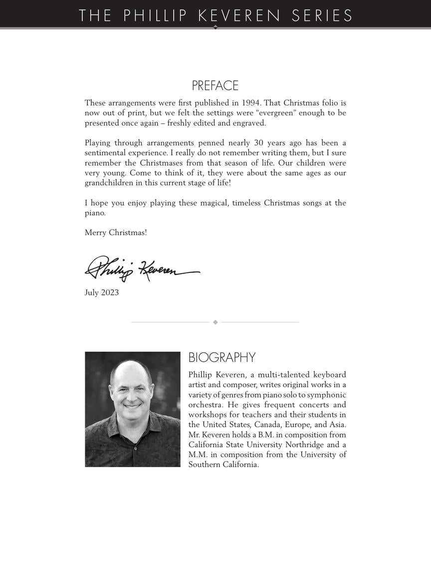 With Phillip Keveren's elegant touch, classic holiday tunes come to life on the piano. From the cozy nostalgia of "Blue Christmas" to the heartwarming sentiments of "I'll Be Home for Christmas," these arrangements capture the essence of the holidays.