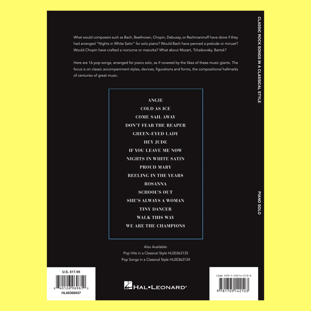 Classic Rock Songs In A Classical Style For Piano Solo Book