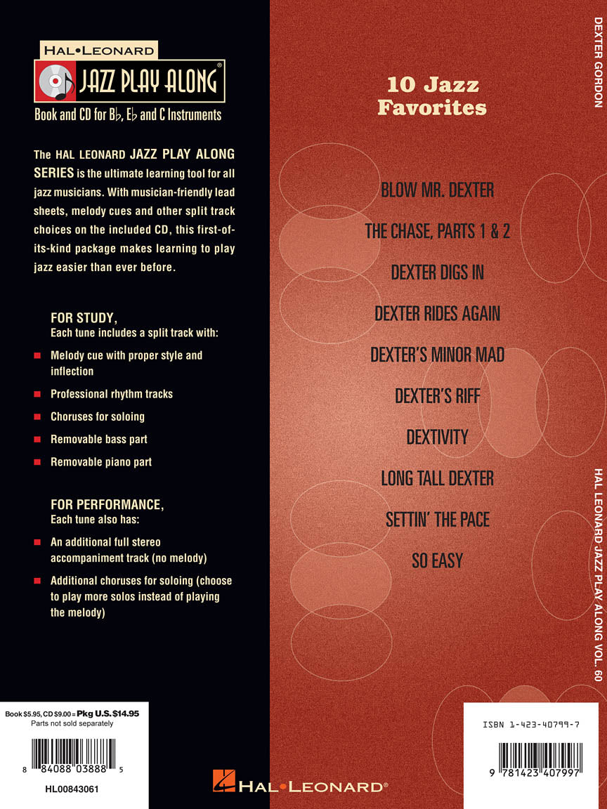 Dexter Gordon - Jazz Play Along Volume 60 Book/Cd  📚📀