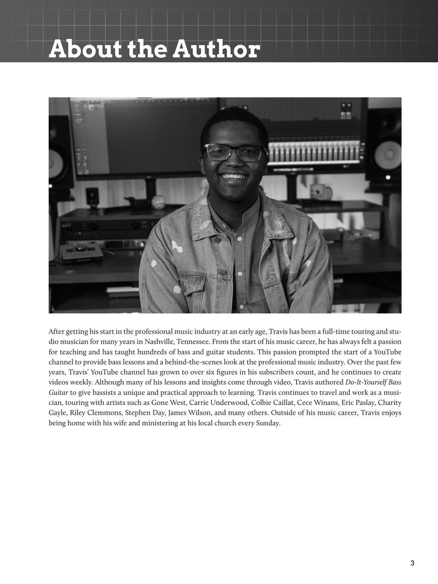 Do-It-Yourself Bass Guitar is a fun way to get started playing on your own. Using well-known pop, rock, and funk tunes, you will be given step-by-step instructions on what you need to know to get started and sounding like a pro in no time. Includes audio tracks for demonstration and play-along, plus video instruction by bass guitarist and instructor Travis Dykes. 128 pages.
