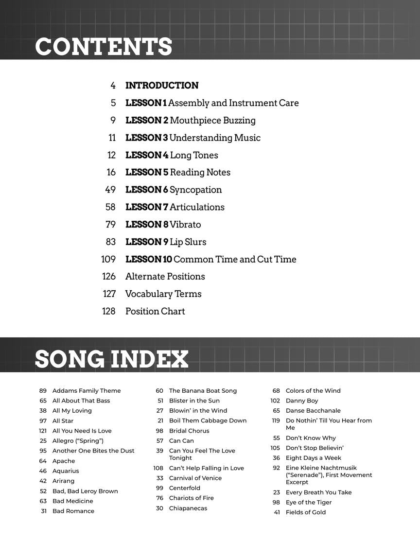 This book includes everything you need to know, including: how to put the trombone together; reading music on the staff; playing notes; developing your sound; instrument care; demonstration audio tracks; video instruction and demonstration; trombone talk: specific hints just for trombone players; toolboxes: the tools you need to keep growing on your instrument.