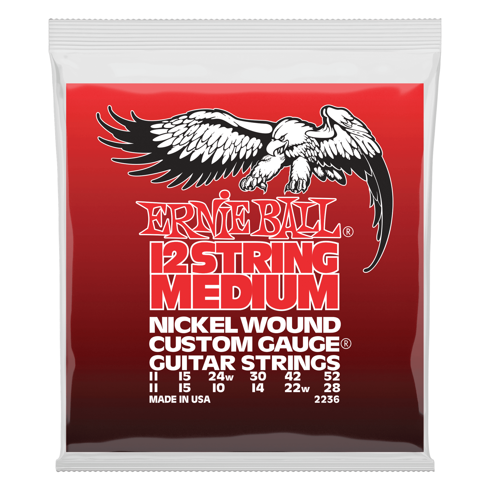 Ernie Ball Medium 12-String Nickel Wound Electric Guitar Strings Set - 11-52