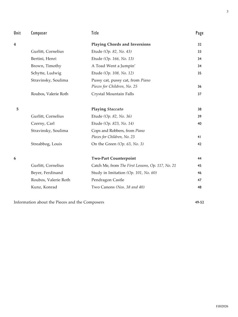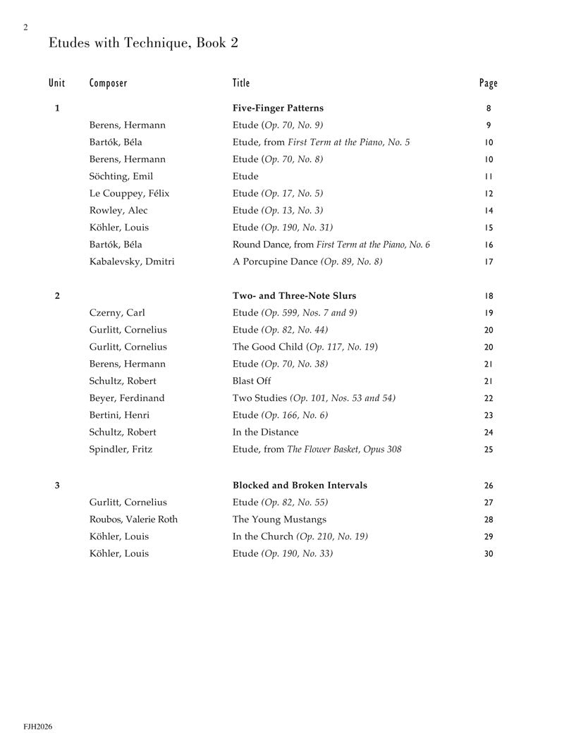Book 2 continues towards the development of a healthy, natural, and effective technique. Reinforcing concepts such as: five-finger patterns; staccato; two-part counterpoint; and then introducing new concepts such as: three-note slurs; blocked and broken intervals; and playing chords and inversions, will hone students' technical abilities with a focused and organised approach.