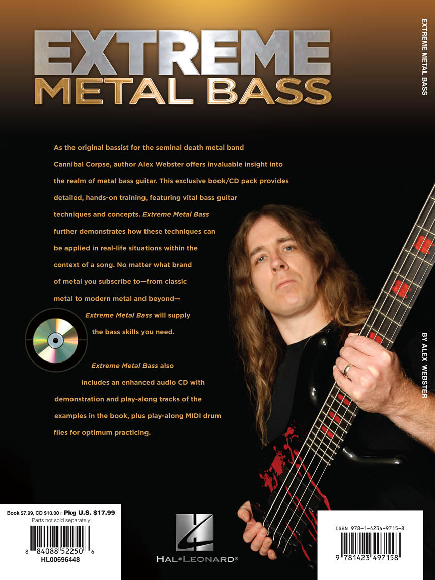 As the original bassist for the seminal death metal band Cannibal Corpse, author Alex Webster offers invaluable insight into the realm of metal bass guitar. This exclusive book/online audio provides detailed, hands-on training, featuring vital bass guitar techniques and concepts.