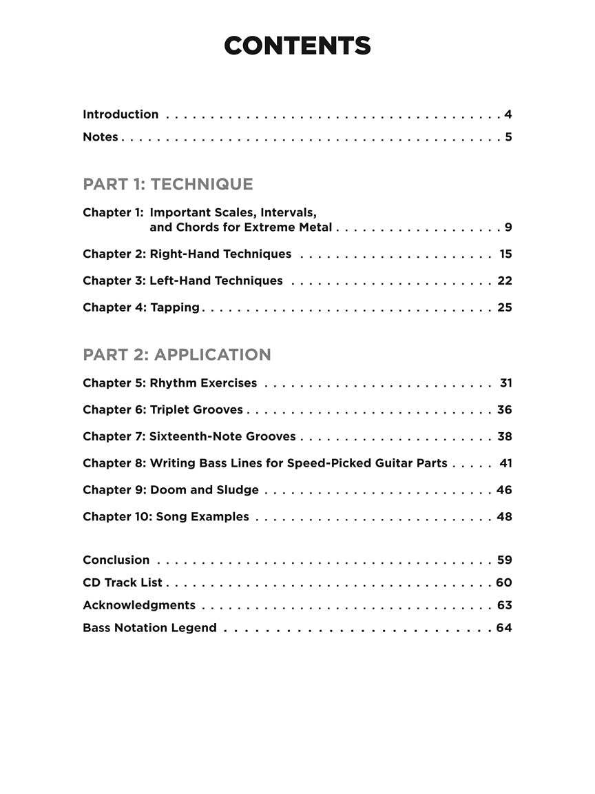 Extreme Metal Bass further demonstrates how these techniques can be applied in real-life situations within the context of a song. No matter what brand of metal you subscribe to, from classic metal to modern metal and beyond, Extreme Metal Bass will supply the bass skills you crave. Extreme Metal Bass also includes enhanced online audio with demonstration and play-along tracks of all the examples in the book, plus play-along MIDI drum files for optimum practicing.