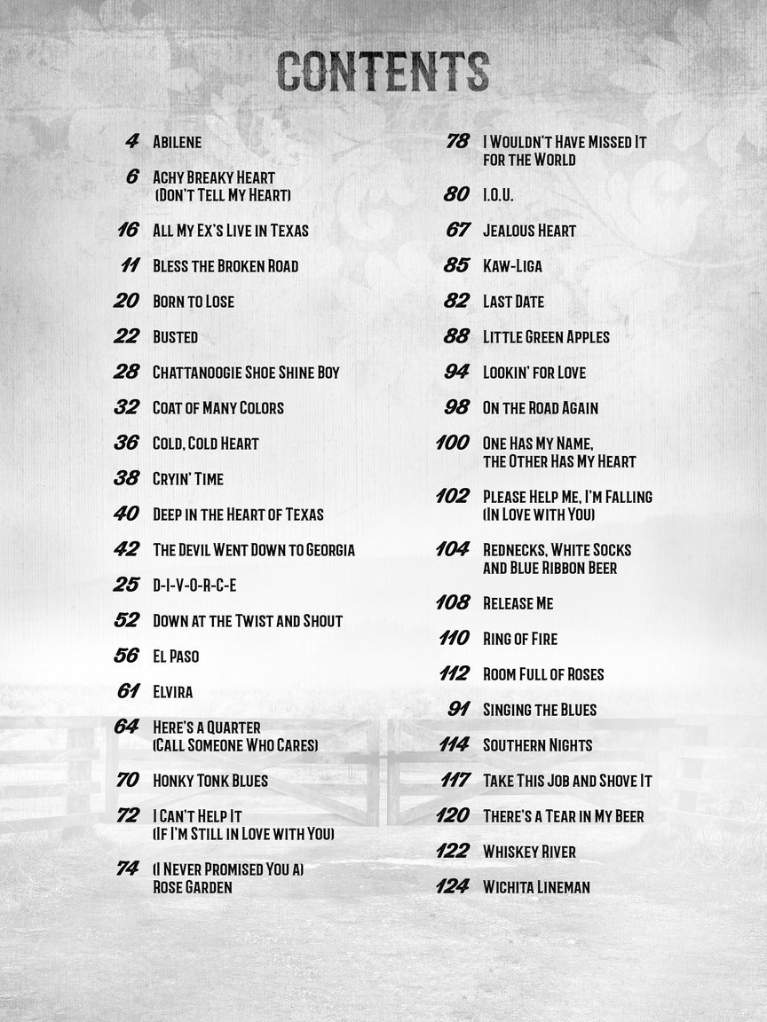 Inside this songbook, you'll find a diverse collection of timeless country hits. From the toe-tapping "Abilene" to the fiery "The Devil Went Down to Georgia" and the smooth harmonies of "Islands in the Stream," these songs capture the essence of country music's rich heritage.