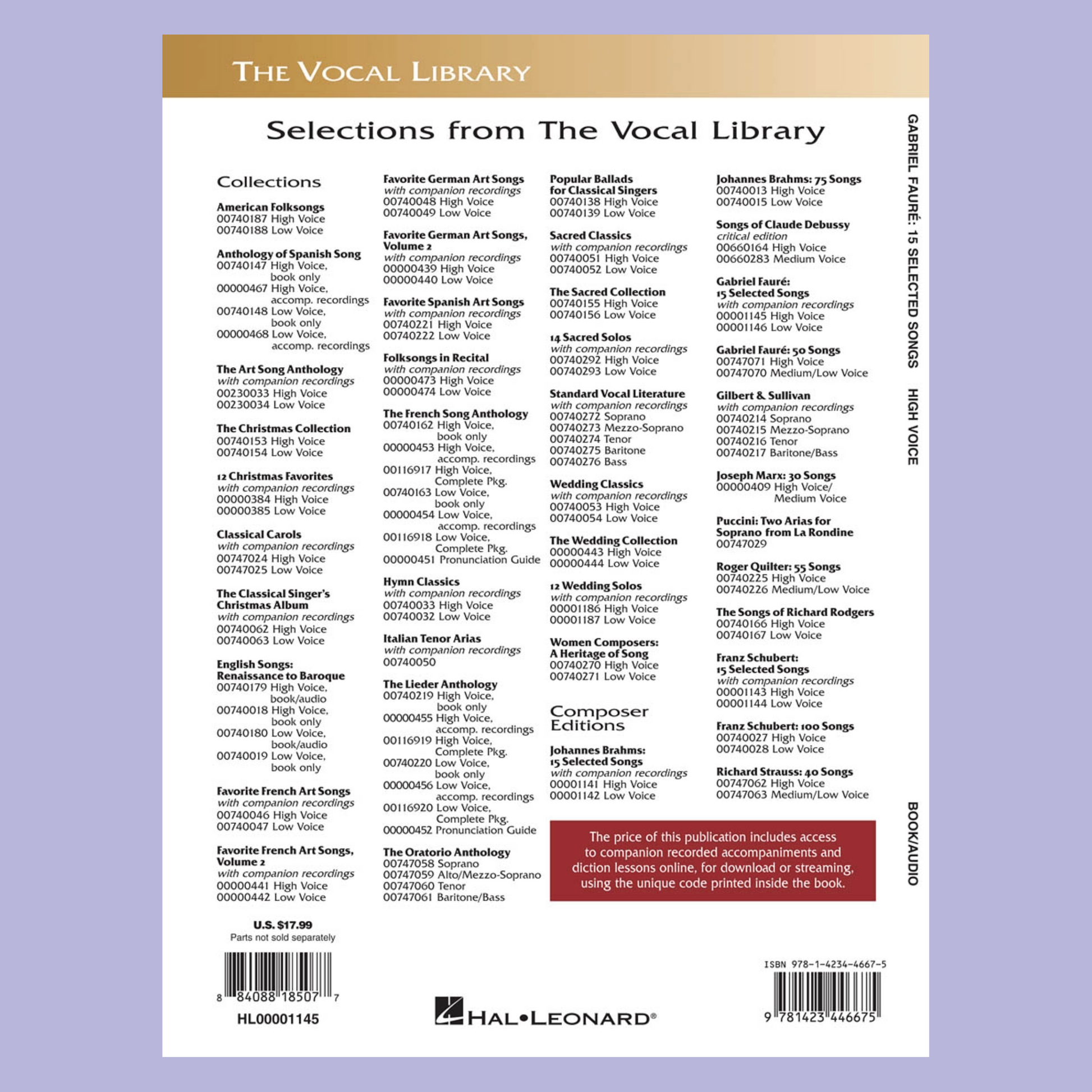 Gabriel Faure - 15 Selected Songs High Voice Book and Online Audio