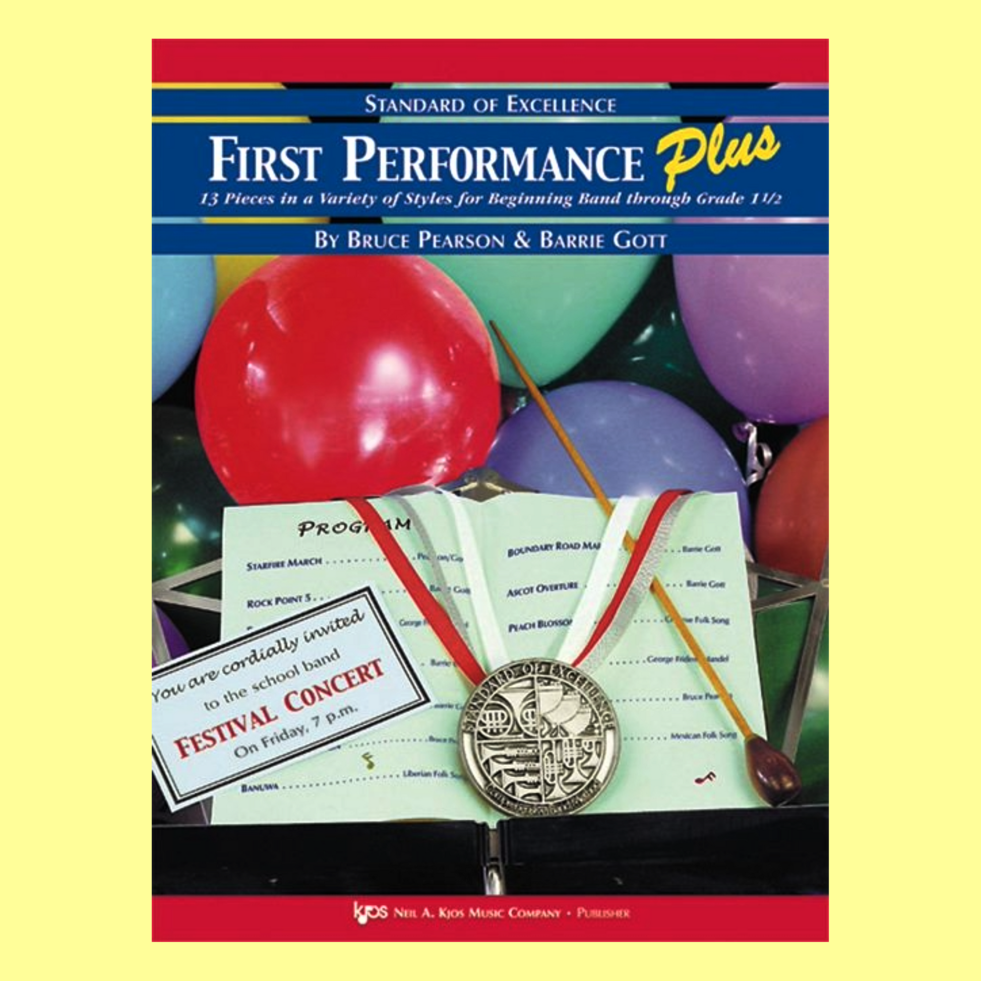 First Performance Plus offers a collection of 13 engaging pieces for beginning band, arranged for timpani and auxiliary percussion. Geared toward students at Grades 0.5 to 1.5, this 28-page book features a variety of musical styles including rock, swing, marches, and traditional folk tunes.