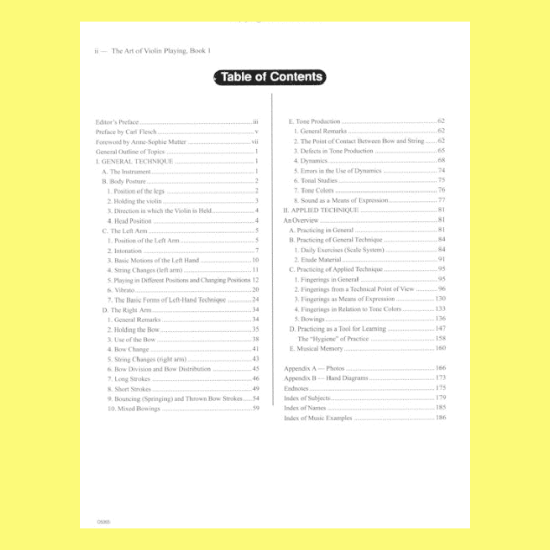 Covering a comprehensive range of topic, such as body posture, left arm positioning, vibrato, various bowing strokes, tone production, and musical memory—this 192-page guide serves as an in-depth resource for mastering violin technique. With examples from master composers like Bach and Tartini, the book also includes a heartfelt foreword by violinist Anne-Sophie Mutter, highlighting the enduring significance of Flesch's work in violin education.