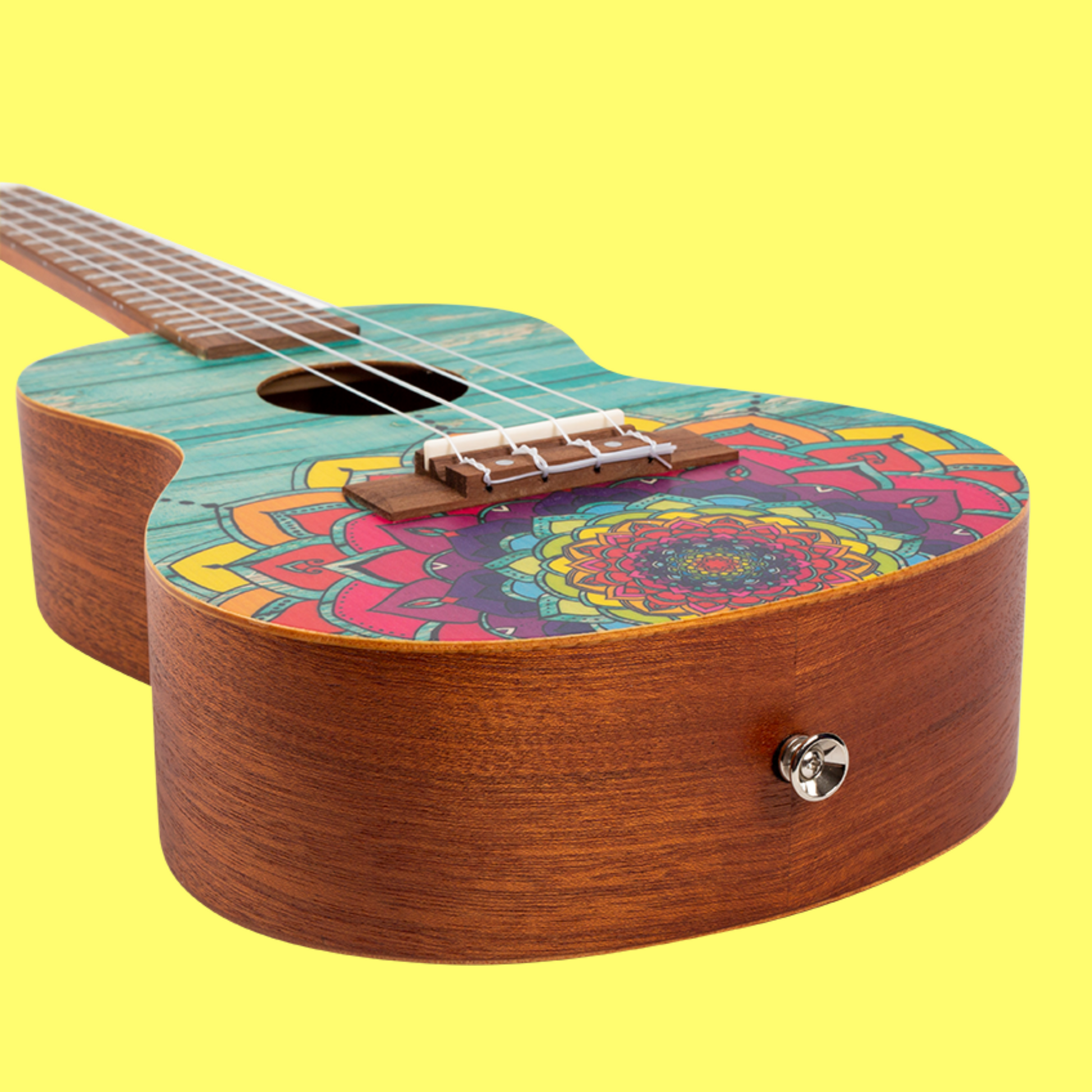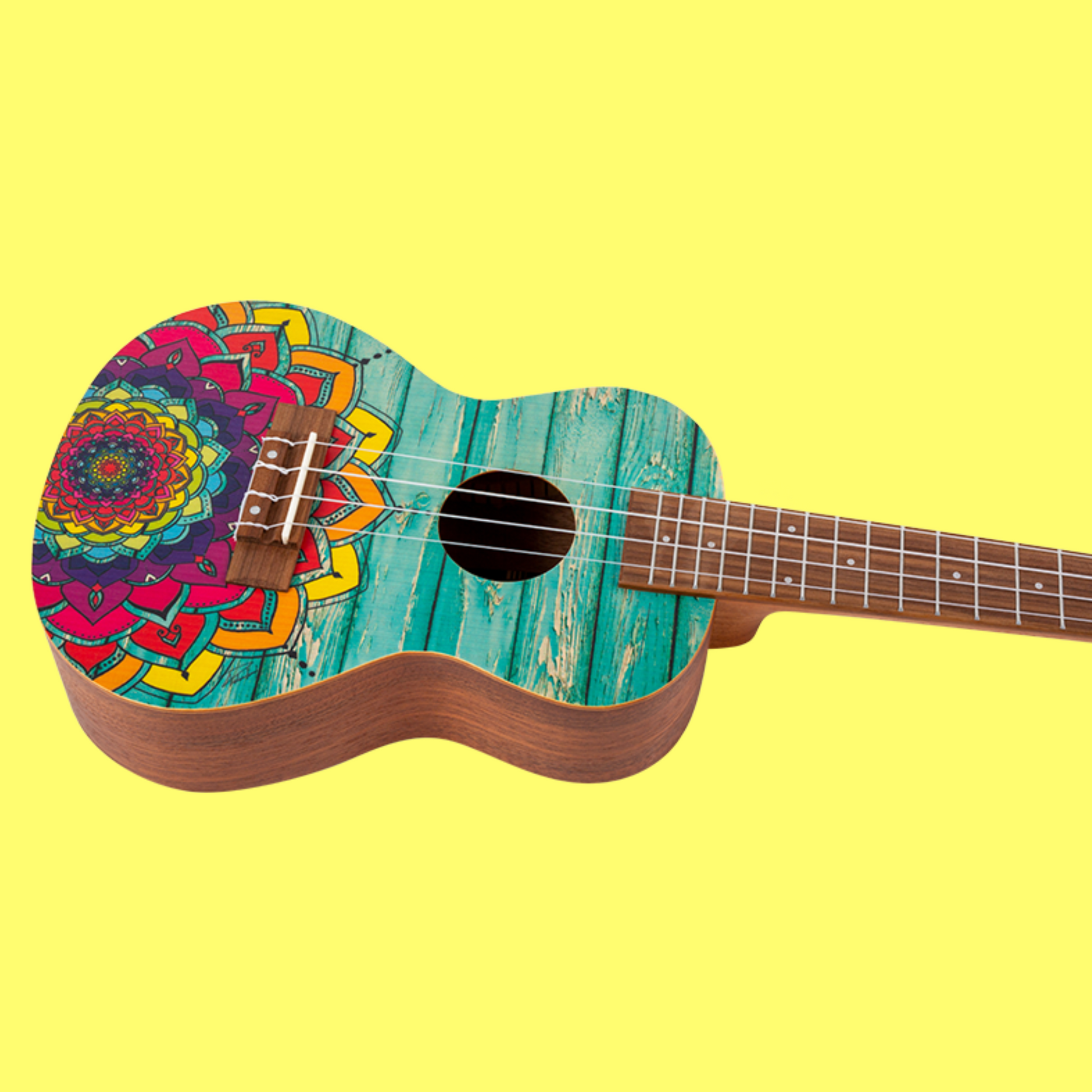 Introducing the captivating Flight AUC33 Mansion Mandala Concert Ukulele, a masterpiece of fun and colourful design with a summer vibe. The lively hues will awaken your adventurous spirit, while the teal wood pattern evokes visions of beachside bliss, inviting you to ride the waves of pure joy.