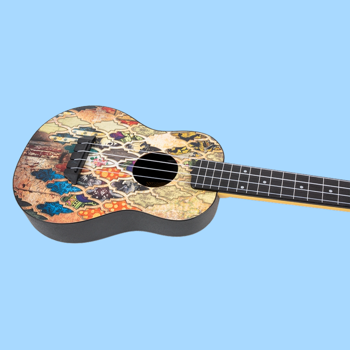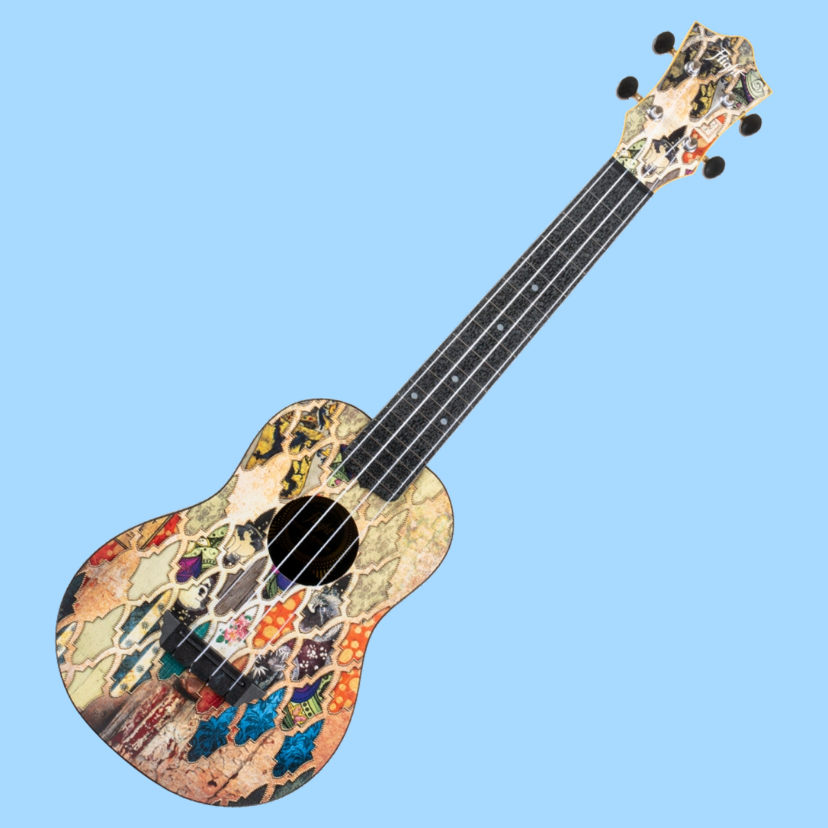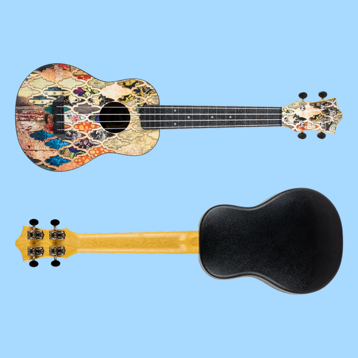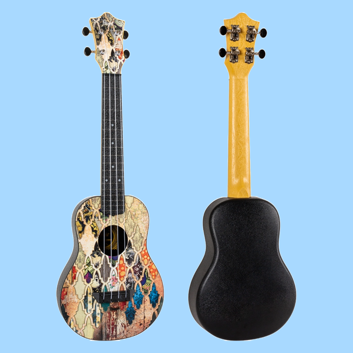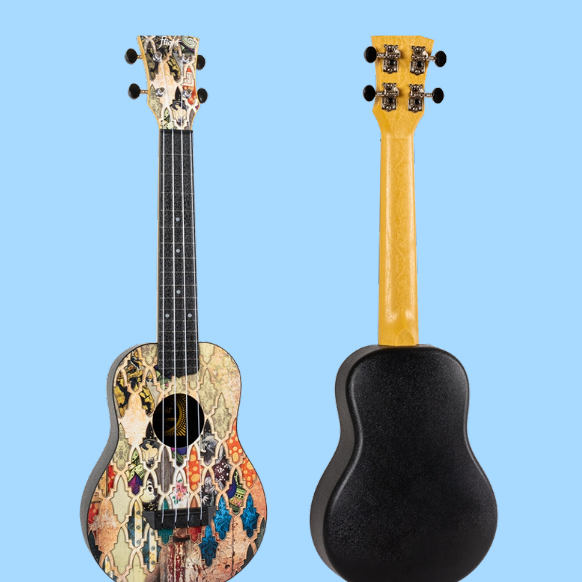 Crafted with a laminate linden wood soundboard, the Flight TUC-40 Granada draws inspiration from the captivating Arabic patterns found in the Alhambra Palace of Granada, Spain. The ukulele features an ABS body, neck, fretboard, and bridge, ensuring a comfortable playability and low action that requires minimal maintenance. The result is a durable instrument that looks stunning, produces a fantastic sound, offers seamless playability, and caters to musicians of all skill levels.