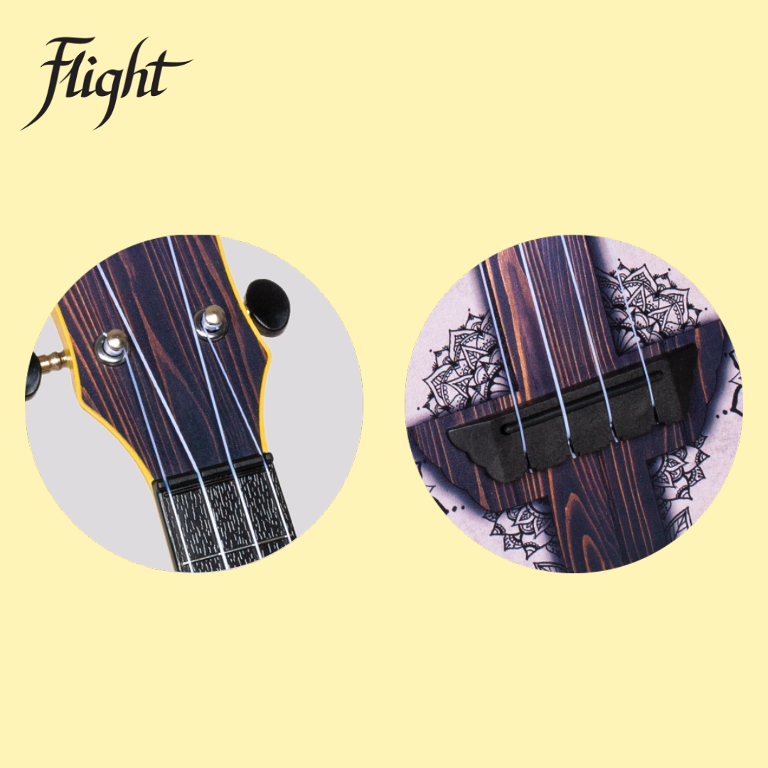 At Flight, our headstock design is a crucial part of our identity. Crafted from laminate linden wood to match the soundboard, our headstocks feature geared tuners that ensure your ukulele stays in tune once properly adjusted.
