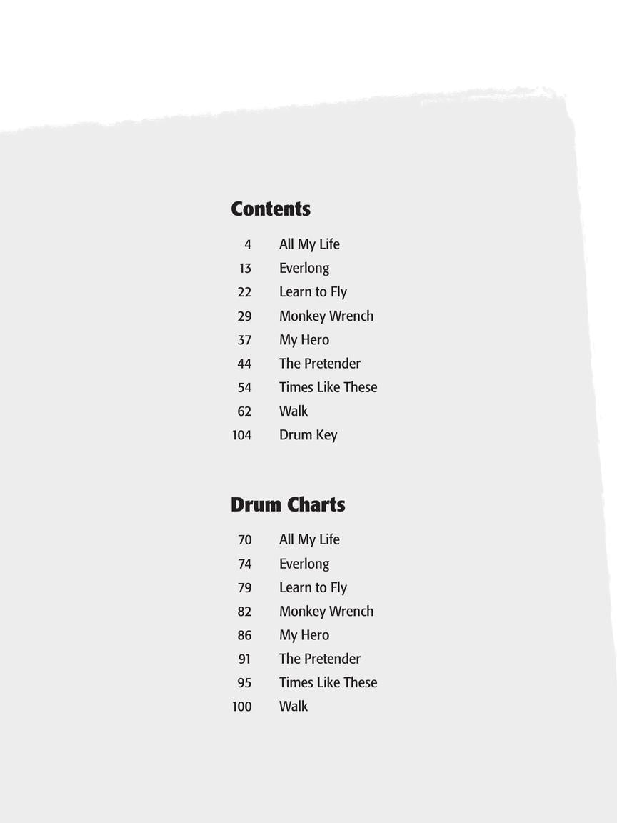 The online audio tracks provide two versions of each song: an instrumental sound-alike recording and a version without drums, allowing you to step into the spotlight and play along with the band. Feel the adrenaline as you groove to hits like "All My Life," "Learn to Fly," "Everlong," "My Hero," and more.
