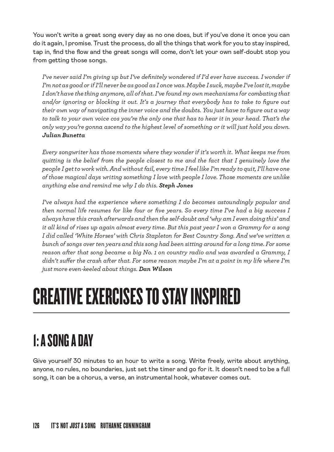 It's Not Just A Song by GRAMMY and BRIT nominated Irish singer-songwriter RuthAnne Cunningham is the must-have guide to writing hit songs. The book serves as an essential guide for aspiring songwriters, featuring insights from industry heavyweights and candid discussions on navigating the music business and sustaining a career.
