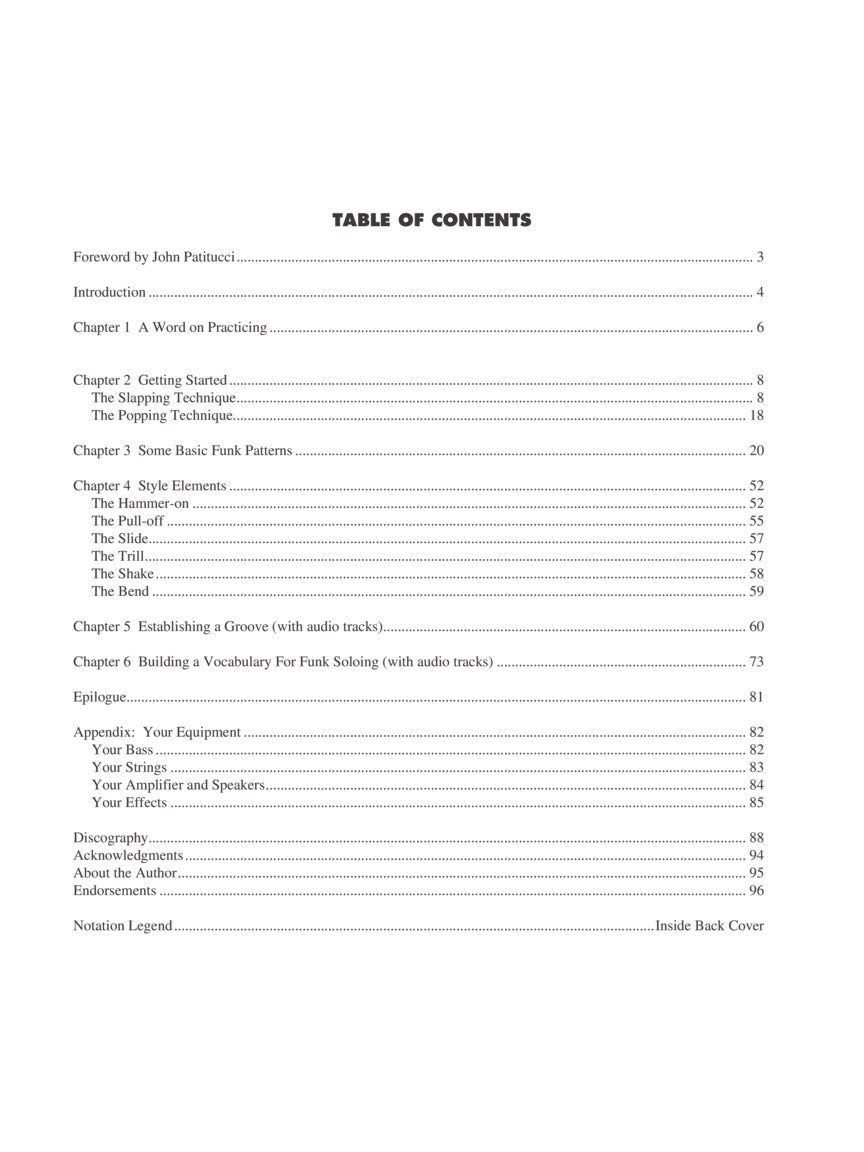 The book covers a wide range of topics essential to funk and slap-style bass, including technique, rhythm, groove, and improvisation. It also includes a special section on equipment and effects, providing valuable insights into achieving the desired sound. The book is complemented by several photos that enhance the learning experience.