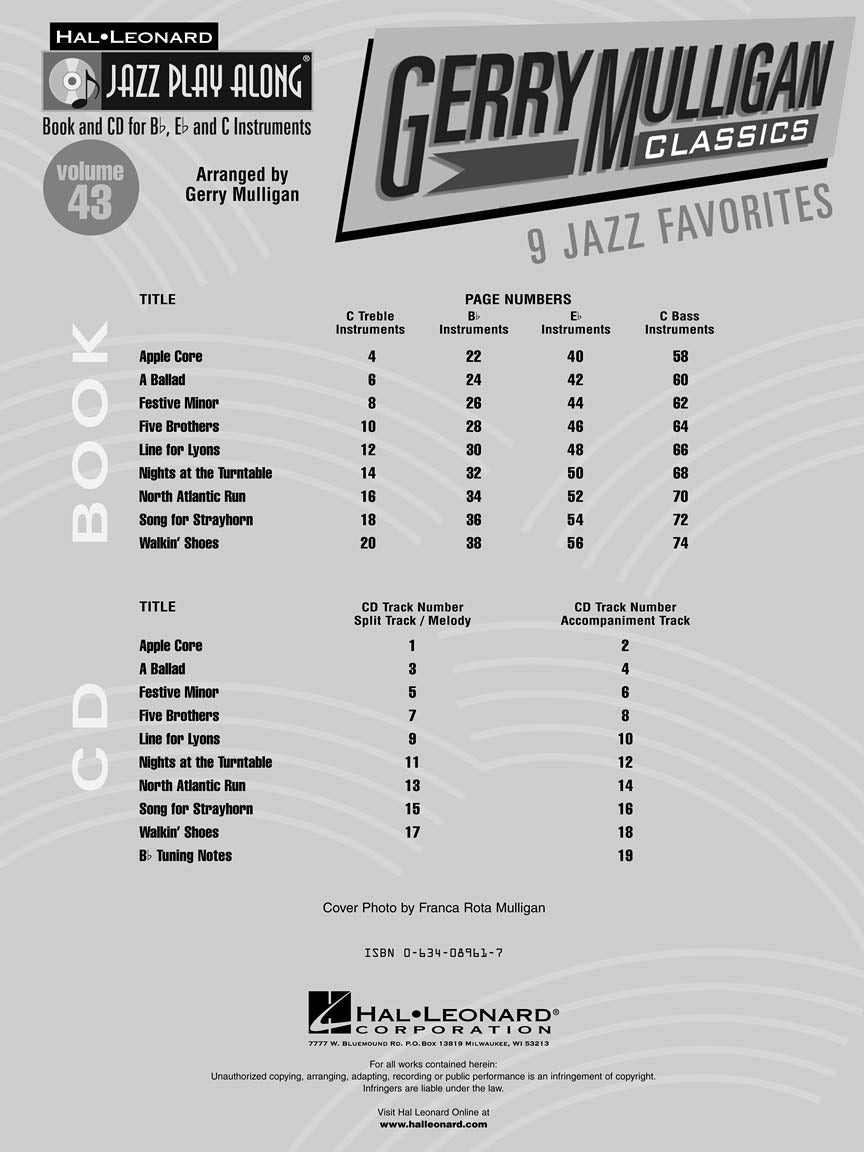 Gerry Mulligan Classics - Jazz Play Along Volume 43 Book  📚📀