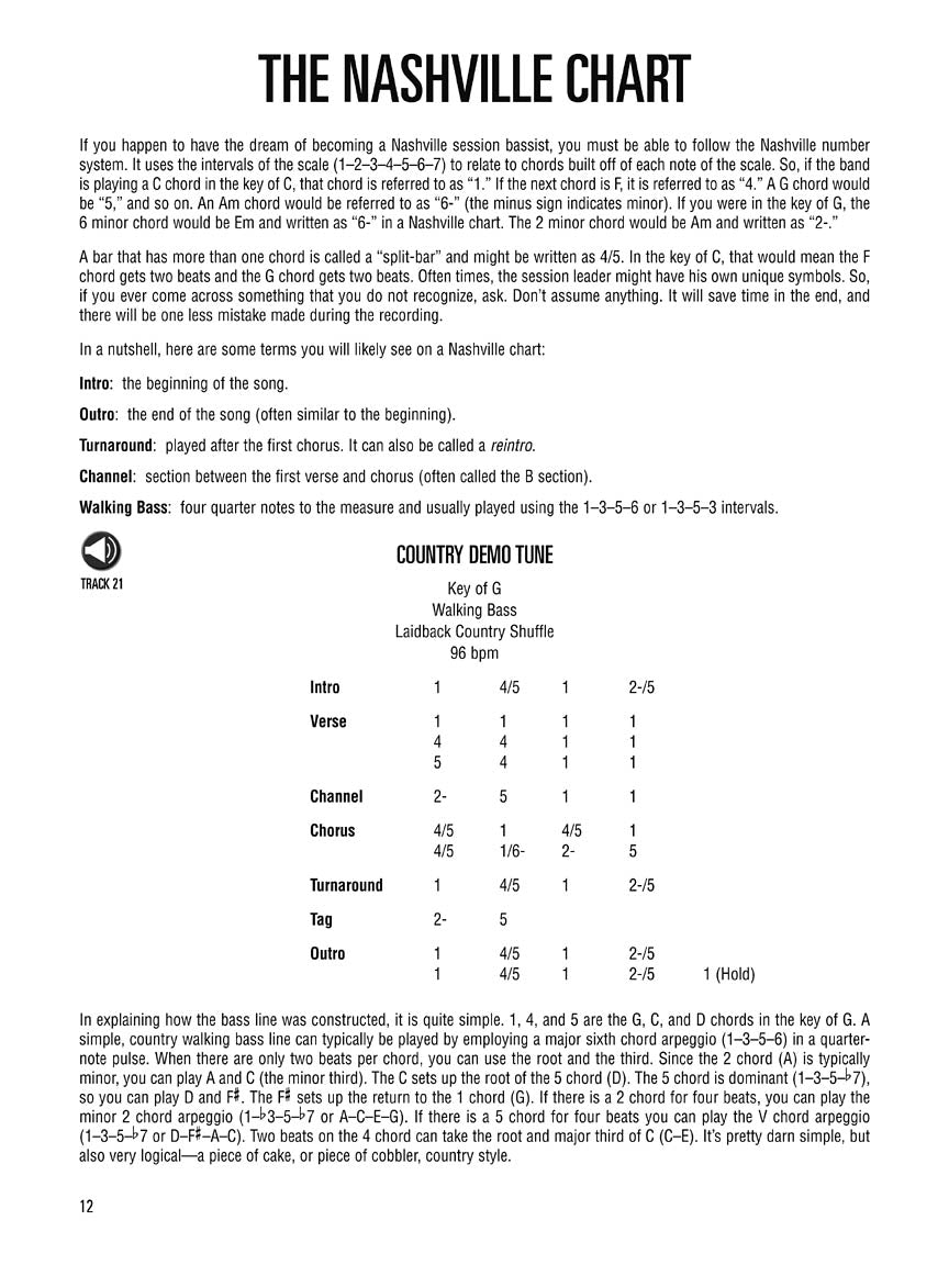 Dive into the rich world of country music with actual songs spanning from classic to modern country. Through these iconic tracks, including "Boot Scootin' Boogie," "Ring of Fire," and "Whose Bed Have Your Boots Been Under?," you'll learn to create the authentic country bass lines that define the genre. The online audio offers 41 full-band tracks for demonstration and play-along, allowing you to immerse yourself in the heart of the country sound.
