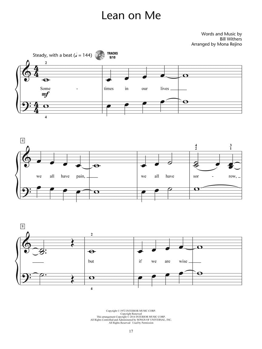 Level: basic note values and rests; sharps, flats and naturals; 3/4, 4/4 meter; melodic and harmonic intervals through a 5th; limited use of hands together passages. Reading range: from Bass Clef B (a 6th below Middle C), to Treble Clef B (a 7th above Middle C). 40 pages. Arrangers: Fred Kern, Mona Rejino, Phillip Keveren